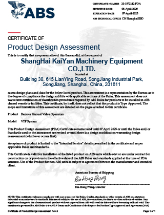 ABS船級社PDA證書